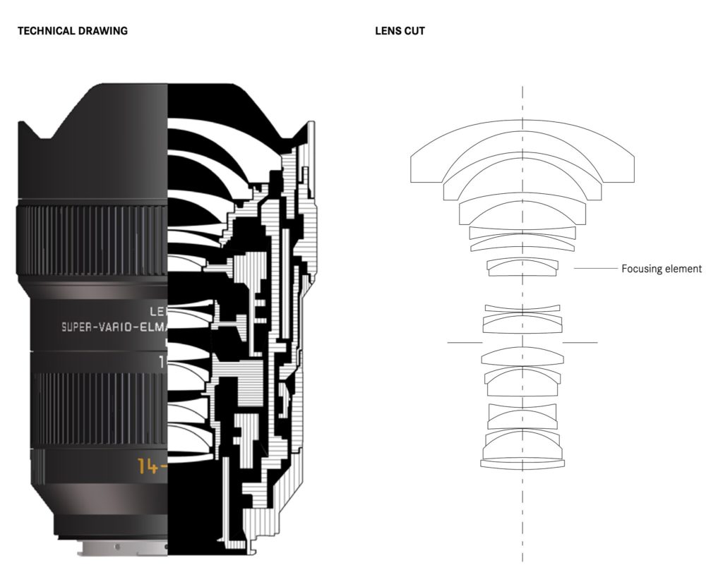 The new lens consists of 14 precision-made lenses (three of them aspherical), which are divided into 11 groups. Leica says the lens’s apochromatic correction is unique given its focal length. The manufacturer emphasizes that each optical element of the lens is made of special high-quality glass, the complex processing of which requires innovative techniques.