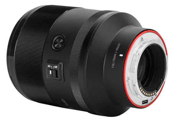 The body is metal, there is a customizable user button next to the AF/M switch, and a USB connector for firmware updates on the bayonet side.