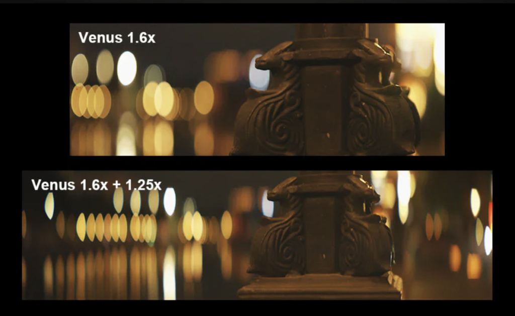 With the Sirui 1.25x proprietary adapter, you can achieve a 2x compression rate (the new lens has a 1.6x rate). This will give more pronounced anamorphic characteristics. For comparison, the company provides the following illustration: