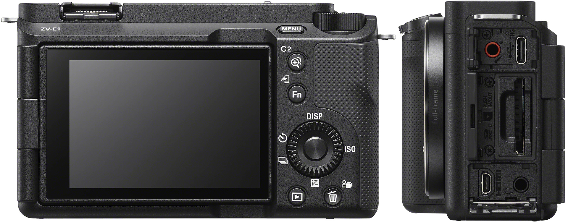 For serious video work, the Sony ZV-E1 features separate microphone and headphone jacks. Unfortunately it doesn’t have a full size HDMI output, instead using micro HDMI. There is a USB-C port (5Gb / s) with the ability to charge. Also, the camera is equipped with dual-band Wi-Fi and Bluetooth version 4.2.