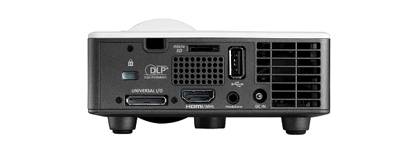 Basic of this projector is the integration of Ultra Short Throw lens that makes it possible to project an image with a diagonal of 100 “from a distance of 1.7m, while from a distance of 1m it creates a 60” image. Almost anything can be used as a source, as the ML1050ST has HDMI, with MHL support for smartphone playback, USB port for USB stick connection, memory card reader, VGA input and audio output to mini-jack. Of course, the projector incorporates a media player for playing the material as well as an office viewer for playing slides. Optionally, the LM105OST can stream content wirelessly over a local area network by adding an Optoma USB wireless adapter and using the HDCast Pro app.
