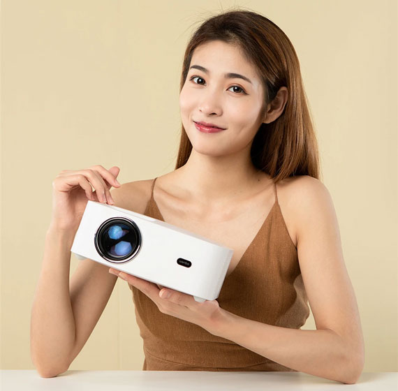 Like other products in the Xiaomi ecosystem, the Wanbo X1 projector has a white plastic body with a minimalist finish . We do not have exact measurements supplied by the manufacturer, but as you can see in the images, it is very compact and easy to transport, which is always a bonus.