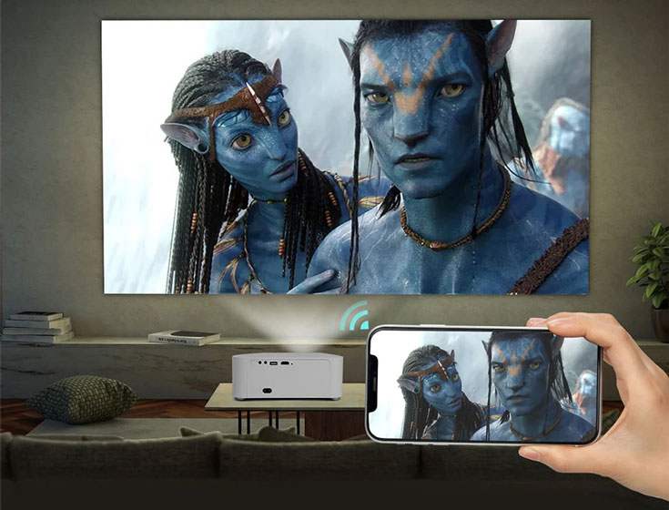 Going into detail, this is a projector with native 720p resolution , but it can project in 1080p @ 60Hz (with upscaling) when connected to a device that supports higher resolution. Its brightness is up for debate, some sources list it as 500 ANSI lumens, but the truth is that it is 300 ANSI lumens . Also, you can project a 40 to 120-inch image with reasonable quality.