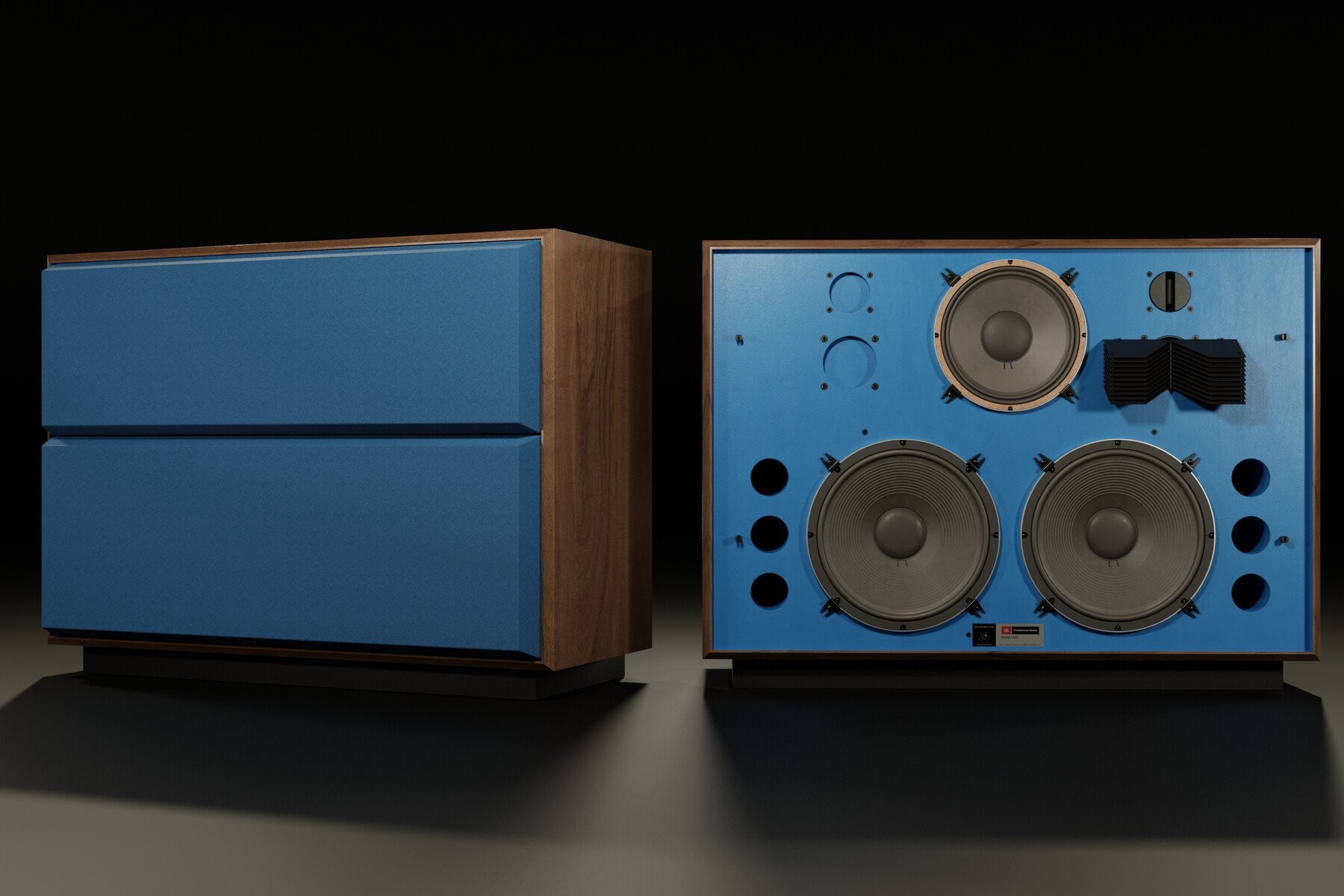 One of the top speakers in JBL’s professional blue series, the 4350, was released in 1978. At first, acoustic systems took root in studios, and in the 21st century, music lovers began to use them at home – as it turned out, few people can compare with this speaker in terms of pressure and bass intelligibility. No wonder – a four-band system operates in the frequency response from 30 to 20,000 Hz, has a sensitivity of 95.5 dB and weighs 110 kg. Two 38 cm JBL 2231A woofers, up to 126 dB of sound pressure, frequency response from 30 Hz – everything is fine here.