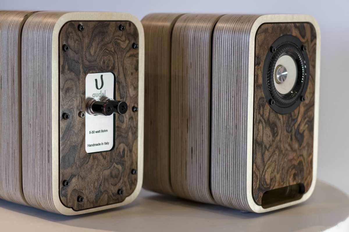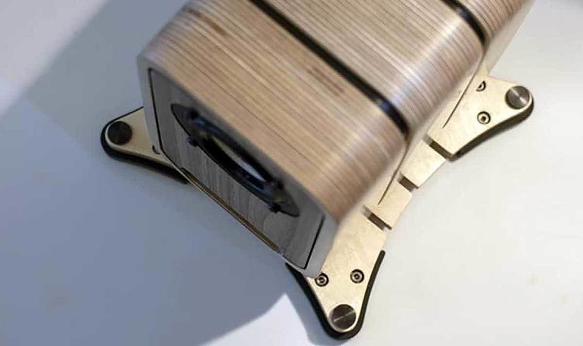 Its channel crosses the entire depth of the cabinet three times – with an exit on the front panel. In order to keep the body as rigid as possible, it is glued from layers of birch veneer of variable geometry. Audel called this solution a multiplex design.