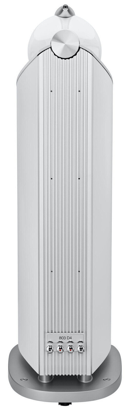 The HTM82 D4 center channel acoustics received a similar design. The 804 D4 also added a downward-facing bass reflex port and an aluminum base, also taken from the older models. The 801 D4 has a stainless steel port plate.