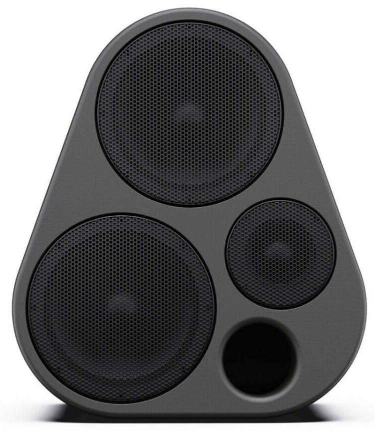 In a triangular speaker cabinet with rounded corners, two 10-inch woofers are built, one 1.5-inch tweeter and a port for bass amplification. Also hidden inside the Enkl Speaker are two 140W Class D amplifiers.