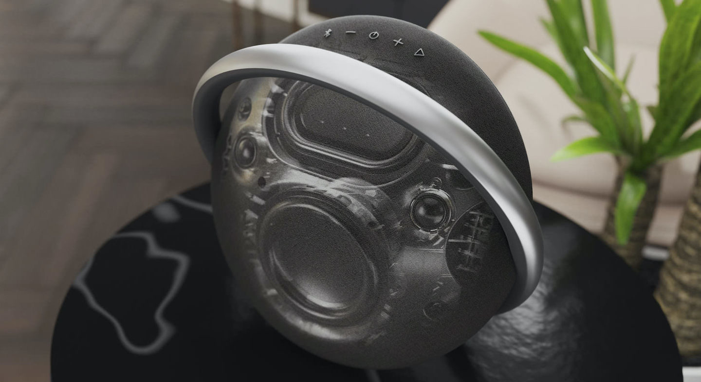 The company emphasized that Onyx Studio 7 stands out for its signature “impeccable workmanship” and premium materials: the body is finished with acoustic fabric, and the carrying handle, shaped like a Saturn ring, is made of brushed anodized aluminum.