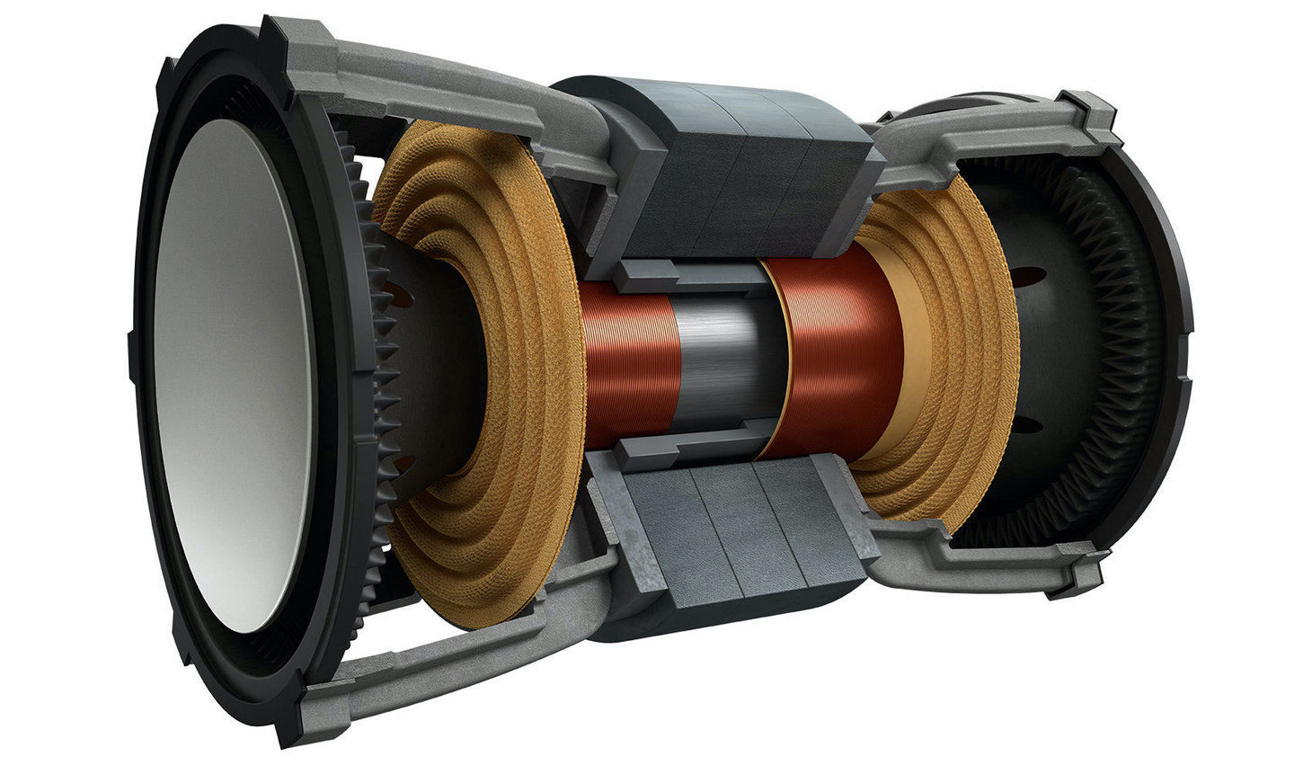 The Uni-Core system is based on two single-motor emitters, where one coil is placed on top of the other, forming a concentric structure. Thus, two emitters, in fact, share one common space for operation. The Uni-Core technology allowed the drivers to provide a long range, and this, accordingly, affected the efficiency of the system.