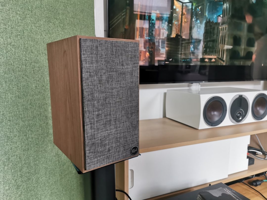 We looked up for a moment when unpacking Klipsch The Fives. The marketing photos gave the impression that they are a bit larger, but the Klipsch speakers turn out to be surprisingly compact in reality. The fact that they immediately look slim is probably due to the limited width. Modest dimensions in height and width are often compensated for by a greater depth with speakers, but that is not the case here. It makes it easy to place The Fives on furniture or small stands. What a contrast to the 65-inch television in our workspace, say.