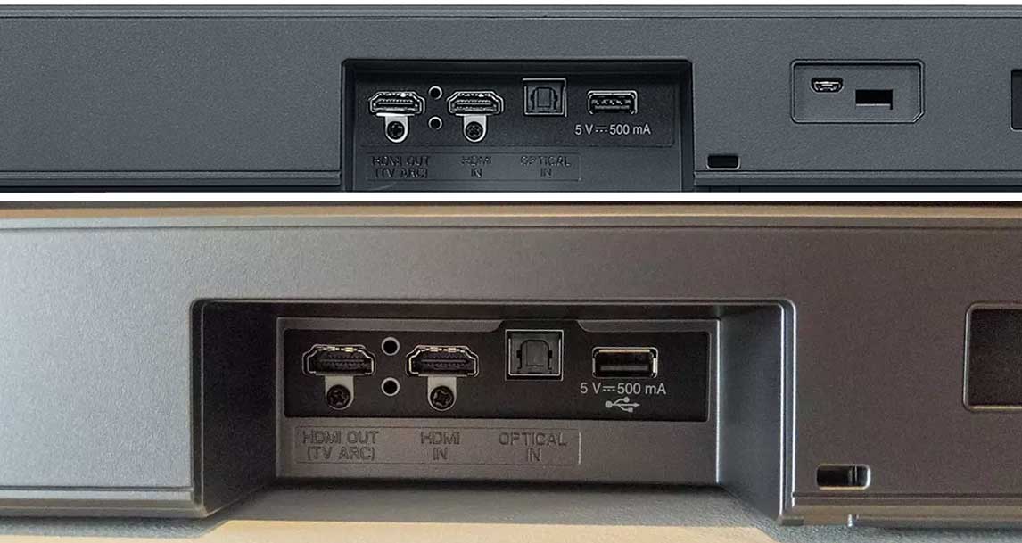 The back of the soundbar is made of solid plastic. It has one compartment for all connections. The power cord is not removable. The build quality of the soundbar is excellent. Hard plastic and metal elements on the front and sides of the bar.