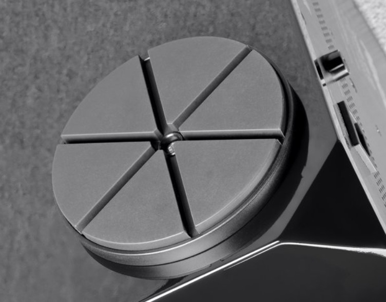 And now it’s time for our new product – Magnat Omega CS12 to enter the stage, and in the most literal sense. For the beveled corners of the cabinet and the glossy lacquer coating, the subwoofer has already received the title of “black diamond” in the German press (for me, it looks more like a dice cube). Thanks to its unusual shape with dimensions of 465 x 400 x 465 mm, it does not seem bulky at all, and in fact it has a 12-inch driver. And even with a closed design, for the declared lower limit of the operating range of 18 Hz, the volume is quite enough. This first of all suggests that the Omega CS12 has some kind of special head with a very low fundamental resonant frequency.