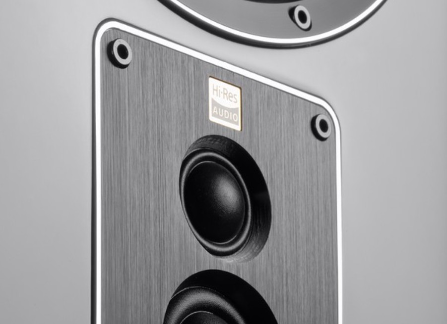 Unlike many competitors, Magnat engineers decided in their top line to do without the planar tweeters (ribbon or Hale), which are fashionable today, but put a pair of dome tweeters in each speaker. Due to this, the identity of the emitters in all bands is achieved and it is possible to better control the radiation pattern. In the Signature 905, the upper range is divided between tweeters as follows: the small 20-mm one sounds the 17500 – 55000 Hz section, and the older one, with a 30 mm caliber, works up to mixing with a mid-frequency head at 2400 Hz. The systems’ ability to reproduce ultrasonic frequencies is marked with a “Hi-Res Audio” nameplate on the front panel.
