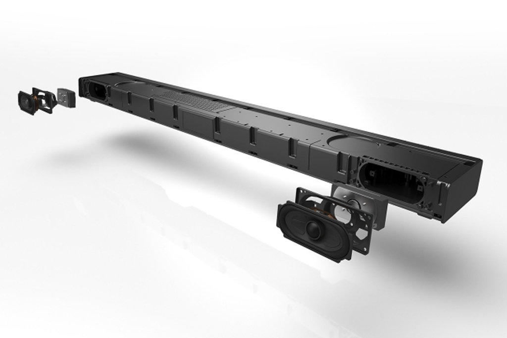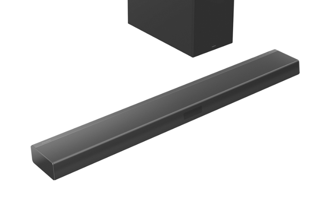 As we discussed earlier, this bar is a 2.1 channel system, with a wireless subwoofer to obtain powerful bass with a total output of 200 W (100 Hz, 10% THD and 3 Ω)). Relative to the bar, it employs two 4.5 x 10 cm full-range speakers located at the front ((1000 kHz, 10% THD, and 4 Ω). A medium performance configuration providing a total of 360 W RMS total power.