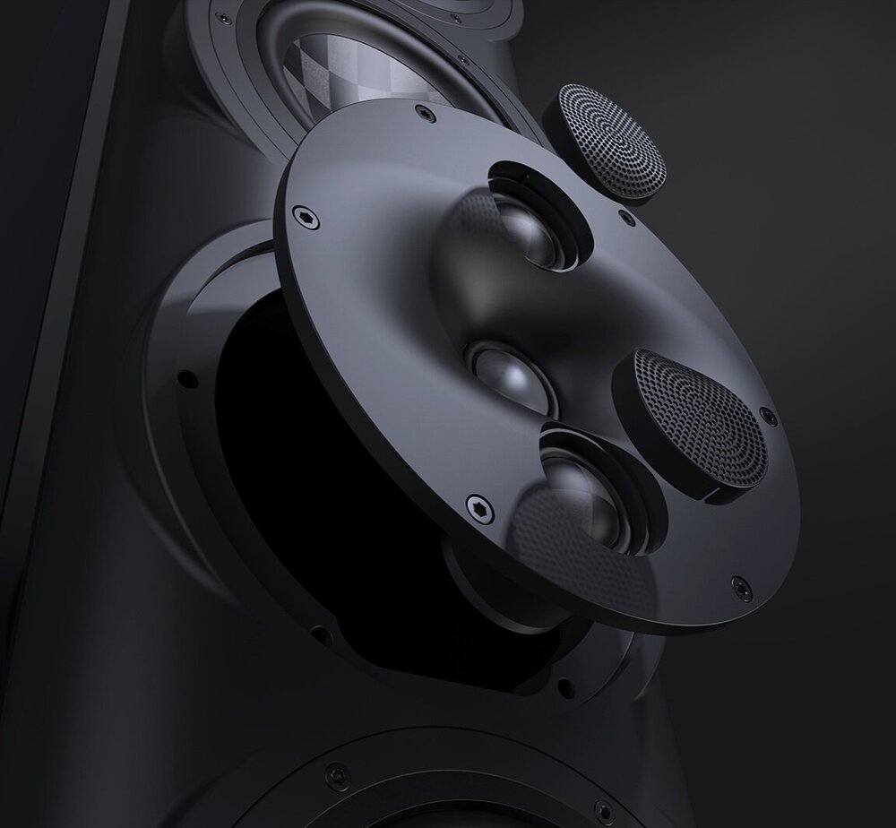 Three 28mm beryllium tweeters housed in a patented Directivity Pattern Control (DPC) waveguide provide a well-defined radiation pattern and 40 kHz upper band.