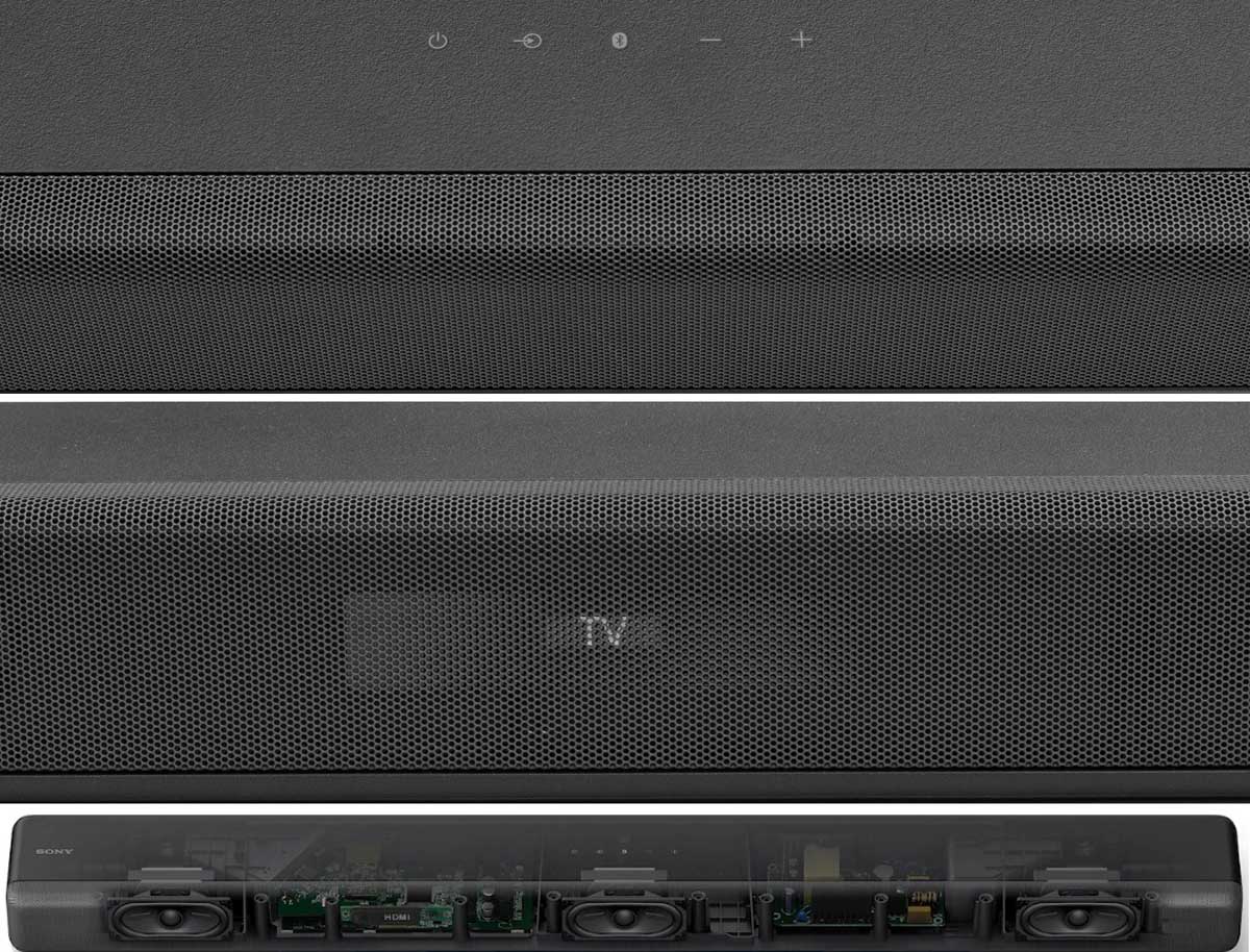 Inside the operation panel are three speakers representing the left, center and right channels. The HT-G700 soundbar does not have active and wireless rear speakers. Physically, the soundbar can only reproduce real 3.1 sound , but thanks to some intriguing technology, this band can at least simulate surround sound.