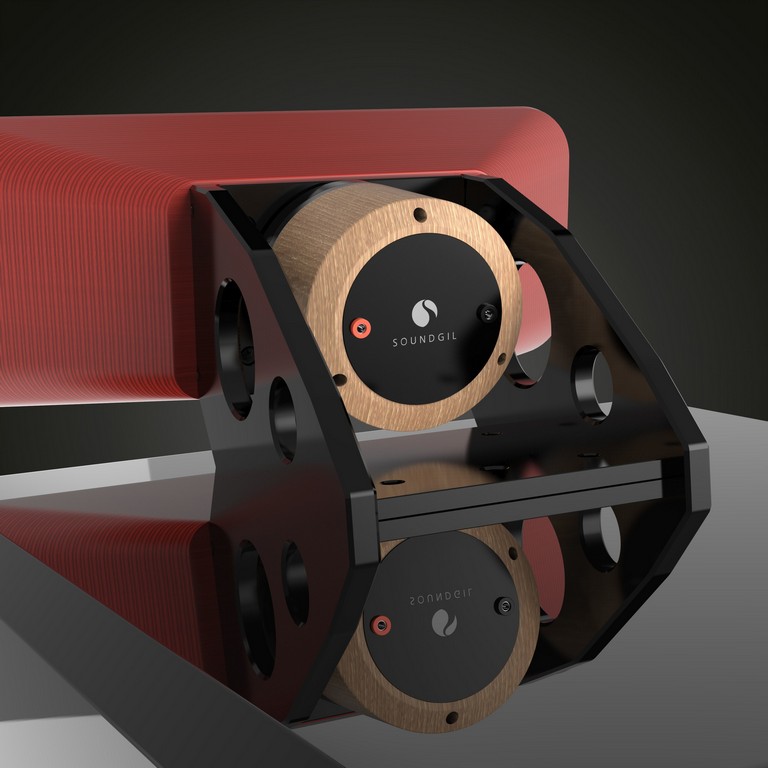 It is complemented by a 16-inch woofer with a composite paper cone on an external suspension of a specially constructed light synthetic rubber. This way the system maintains the linearity of the voice coil movements. It is wound on a titanium frame with silver-plated OFC copper, and, according to the manufacturer, “handles tremendous power.