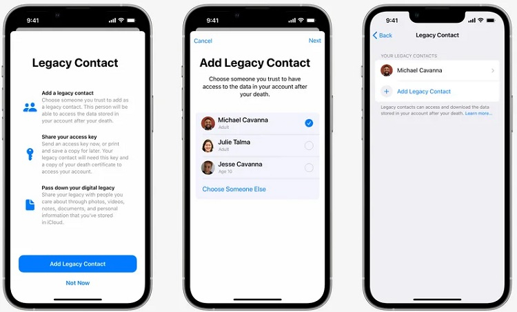 The point is, when a user dies, there is no easy way to access the data stored on their devices and in iCloud. The new Digital Legacy feature, first unveiled at WWDC this year, allows a user to choose up to five people who will have access to data stored in iCloud upon death.