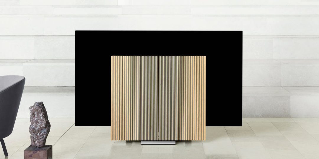 Given the high picture quality that B&O TV offers in a variety of conditions and signals… we can take things from the beginning. What one sees, when the TV set is out of order, is the 77 πάν TV panel placed low so that it is not imposed on the space. A large black surface could easily upset the aesthetic balance inside a home if it is at the normal height at which the views are made.