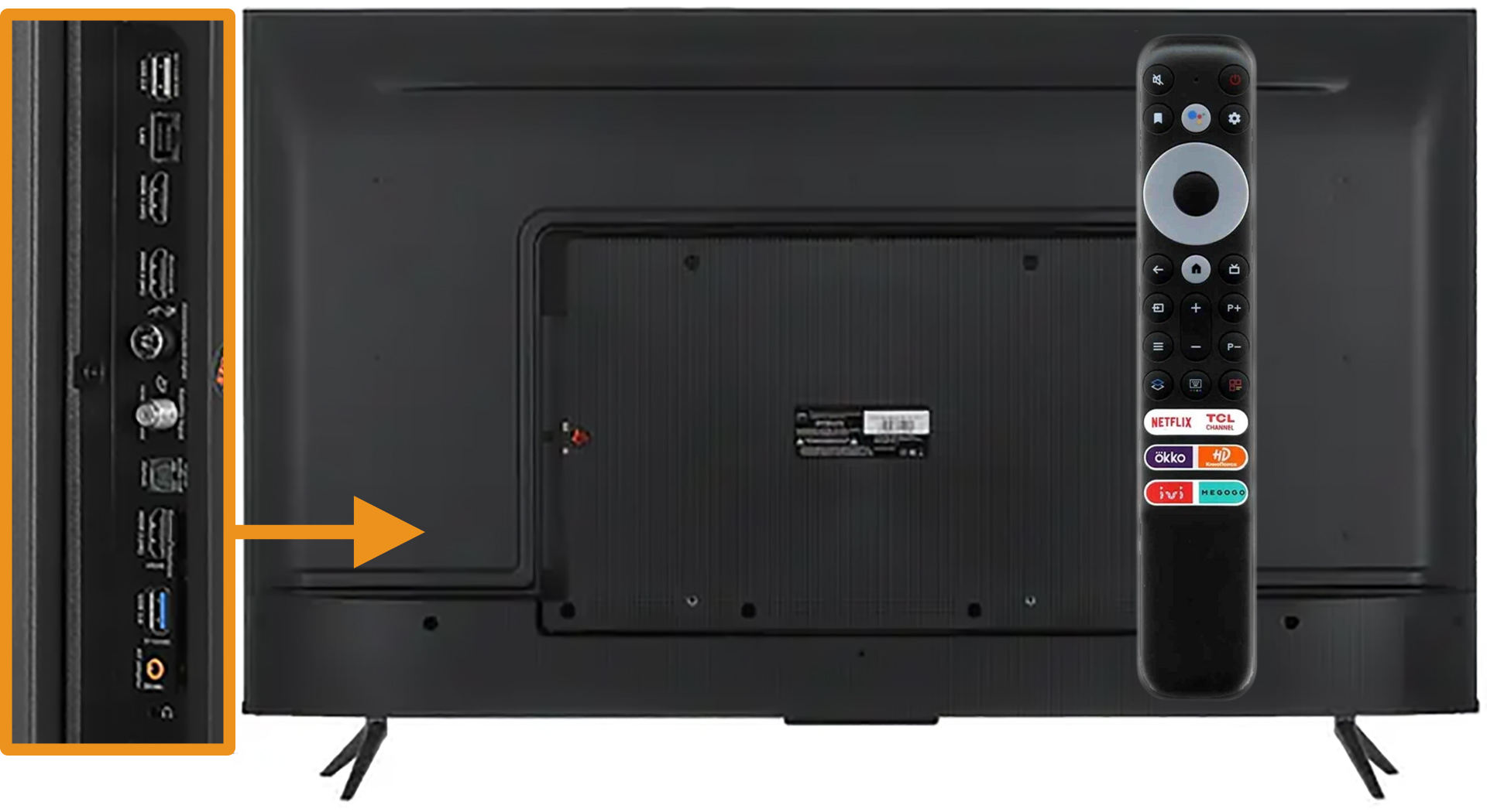 As such, the TV does not have cable management, but there are a pair of hook-latches in order to assemble the wires into at least one bundle. The frames are narrow, do not distract from the image. Only on the matrix itself there are small areas around the perimeter that are not used for imaging. The remote is the same as TCL TVs like C735 . It has an IR channel, as well as Bluetooth for voice control of the TV.