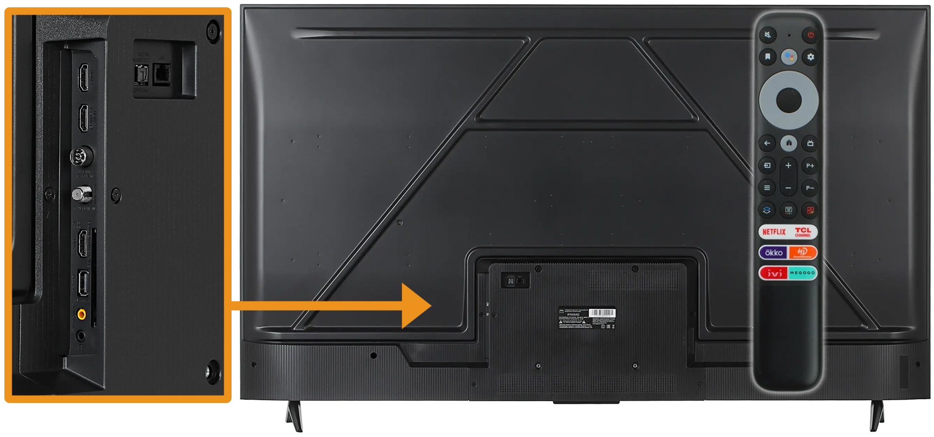 The list of ports on the iFFALCON U62 TV is fully consistent with its simple options. Firstly, there are sockets for connecting satellite and terrestrial antennas. Three HDMI 2.1 ports (one of them with eARC ) are encouraging. In addition, there is a USB 2.0 port.