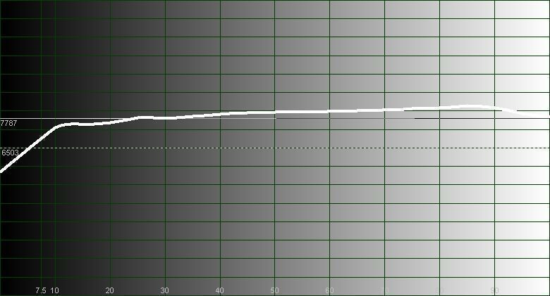 In fact, in the “Bright” mode, to create the impression of high “brightness”, only the color temperature rises, and up to the exorbitant 13,000K, that is, the image becomes frankly blue in tone. When you select “Warm2” temperature in the menu, it also remains high – about 7700K on average over the entire brightness range.