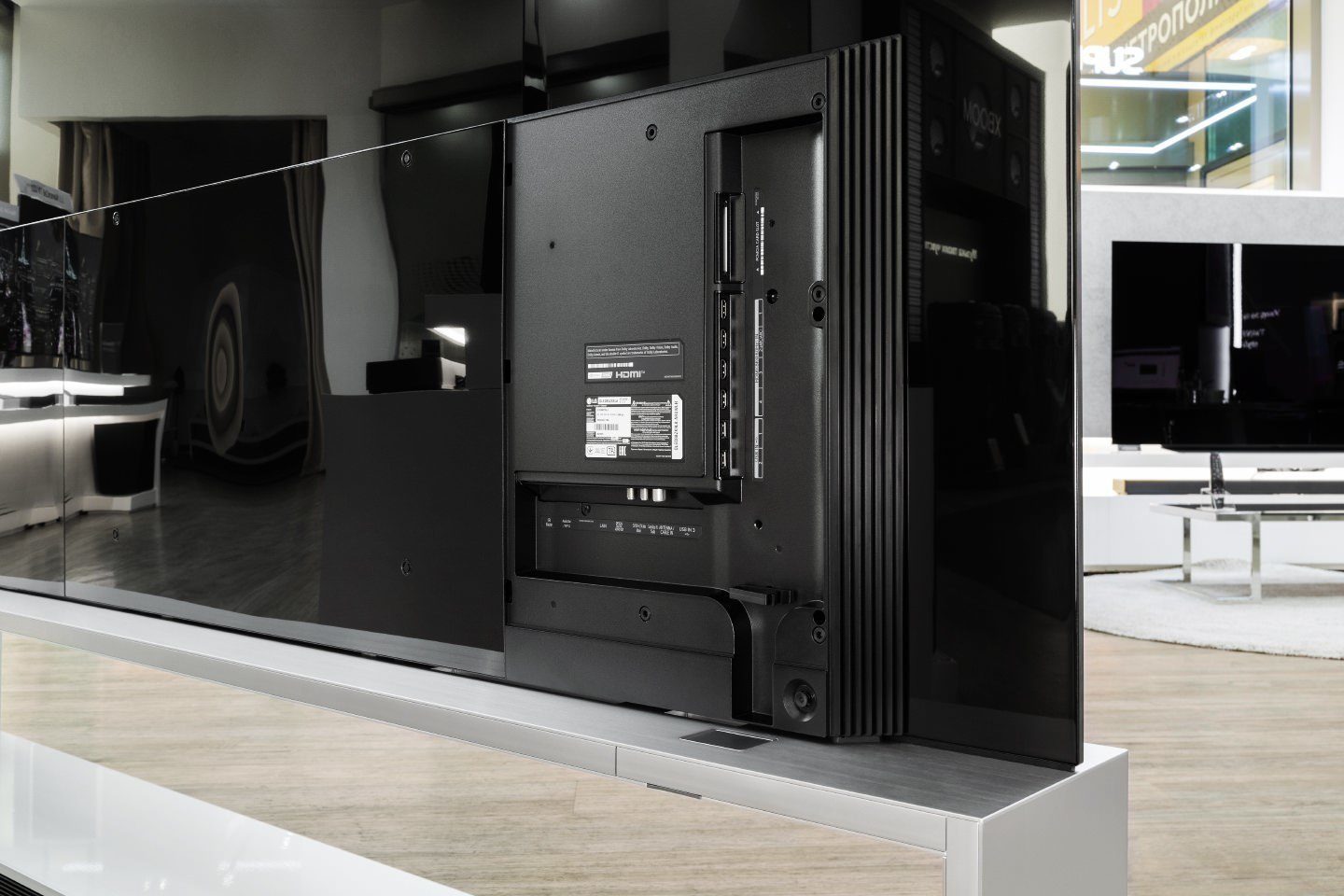 In the spacious LG brand store, where we tested and filmed this model (it would be too troublesome to take it to the laboratory), it looks very large, but not stunningly huge – until you come close and sit next to the screen so that the screen is at eye level … Only after that do you begin to realize the size of this TV.