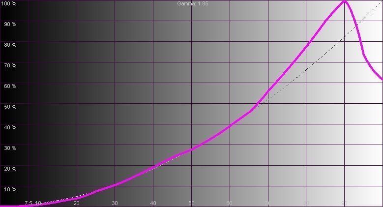 However, even though the dynamic picture settings are turned off, the electronics still interfere with the process to protect the panel and to comply with power consumption regulations. As a result, the graph of gamma (brightness response) is obtained with saturation even when outputting fields in 1/9 of the screen and corresponds to the recommended curve only when outputting bright fields in 1/20 of the area.