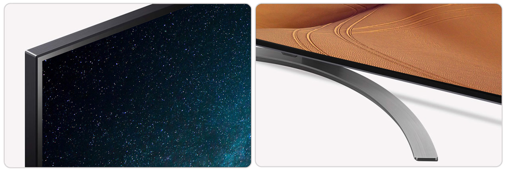 The design of the LG 65QNED866QA is not really inspiring, no different from the LG QNED81 . The device looks very ordinary, with a dark gray back panel and a dark titanium-colored plastic frame. The crescent base is the only bright design accent. This base supports the TV screen about 8 cm from the furniture surface to leave room for the soundbar.