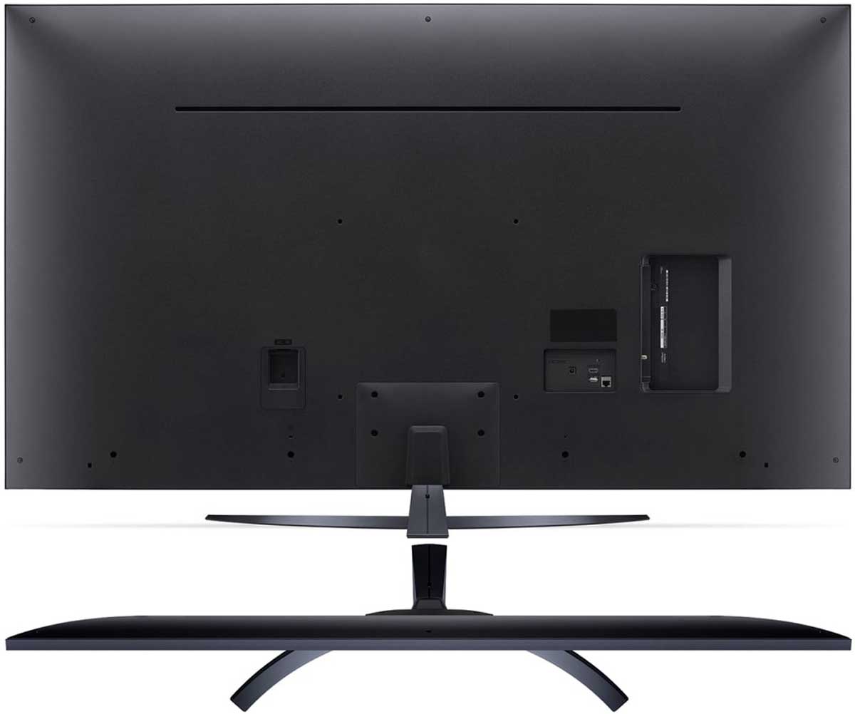 LG 55UP81006 TV has a simple, but at the same time, quite elegant design. The product is made of high quality plastic. A crescent-shaped stand extending from the central part of the TV is used as a support. Such a stand makes it possible to place the TV on a narrower cabinet than with the version with two legs on the sides.