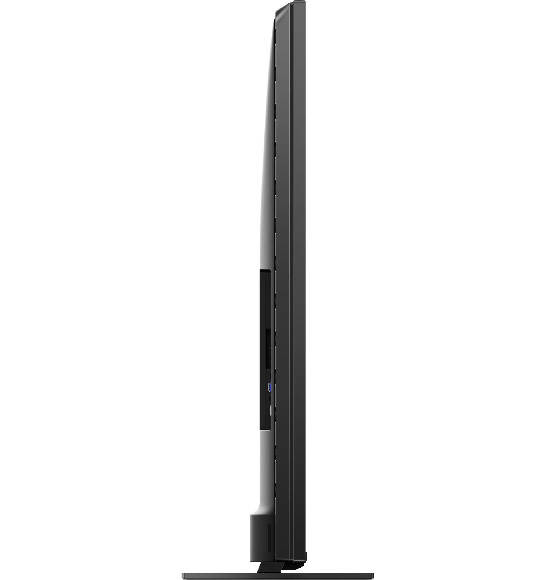 Most low-profile soundbars won’t block the screen, but keep in mind that the IR controller is located under the bottom bezel. The power cable is on the back right and the ports are on the back left. And this arrangement does not prevent the TV from being mounted on a wall using a VESA 300 x 300 bracket and M6 threaded screws.