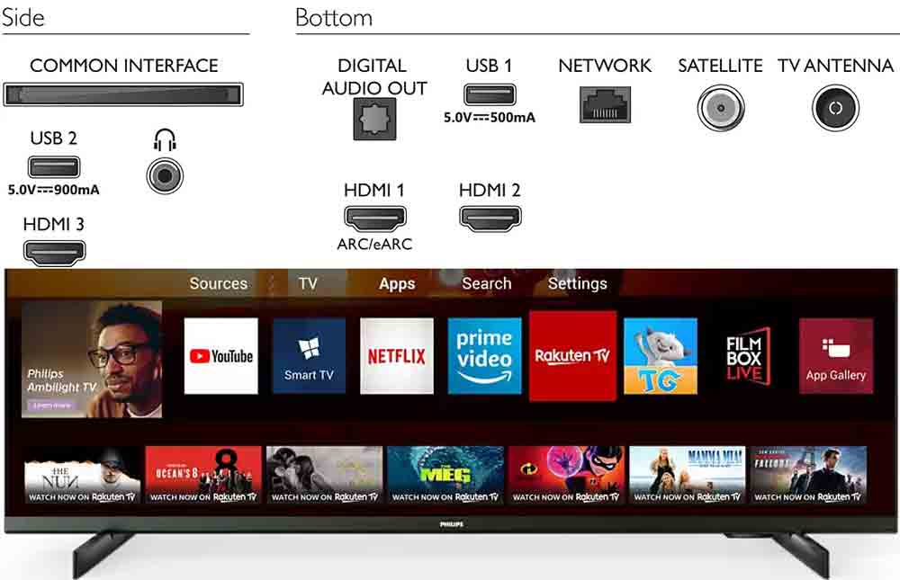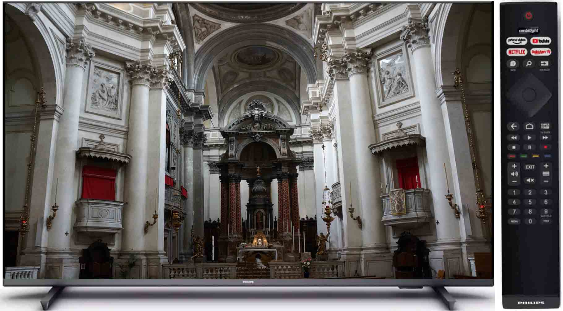 For TV reception Philips is equipped with a triple tuner for DBV-C (cable), DVB-T2 (antenna) and DVB-S2 (satellite). Switching takes 1 to 2 seconds depending on the transmitter. For pay TV channels HD +, channel switching may take a little longer due to encryption