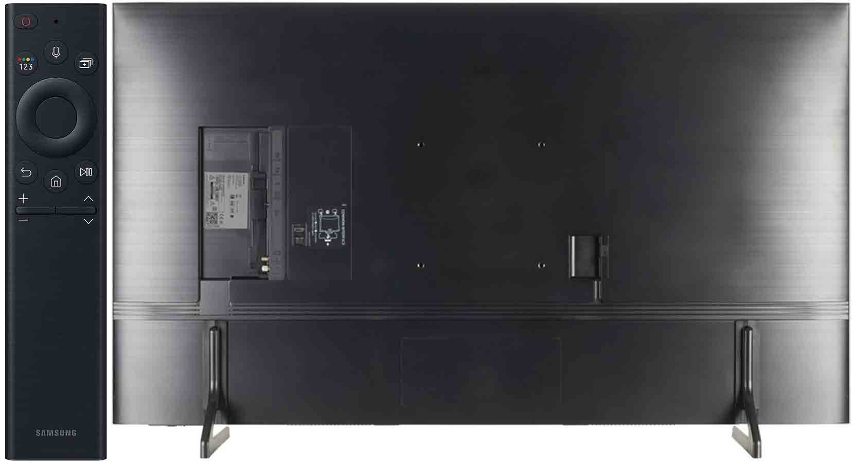 As for the design of the Samsung QE55Q70C TV, this is a surprisingly beautiful model for the middle class. The AirSlim design lives up to its name. With a profile of only 26 mm, it is no different from OLED models. The titanium gray bezel around the screen looks very nice. The black back panel is adorned with a horizontal stripe pattern.