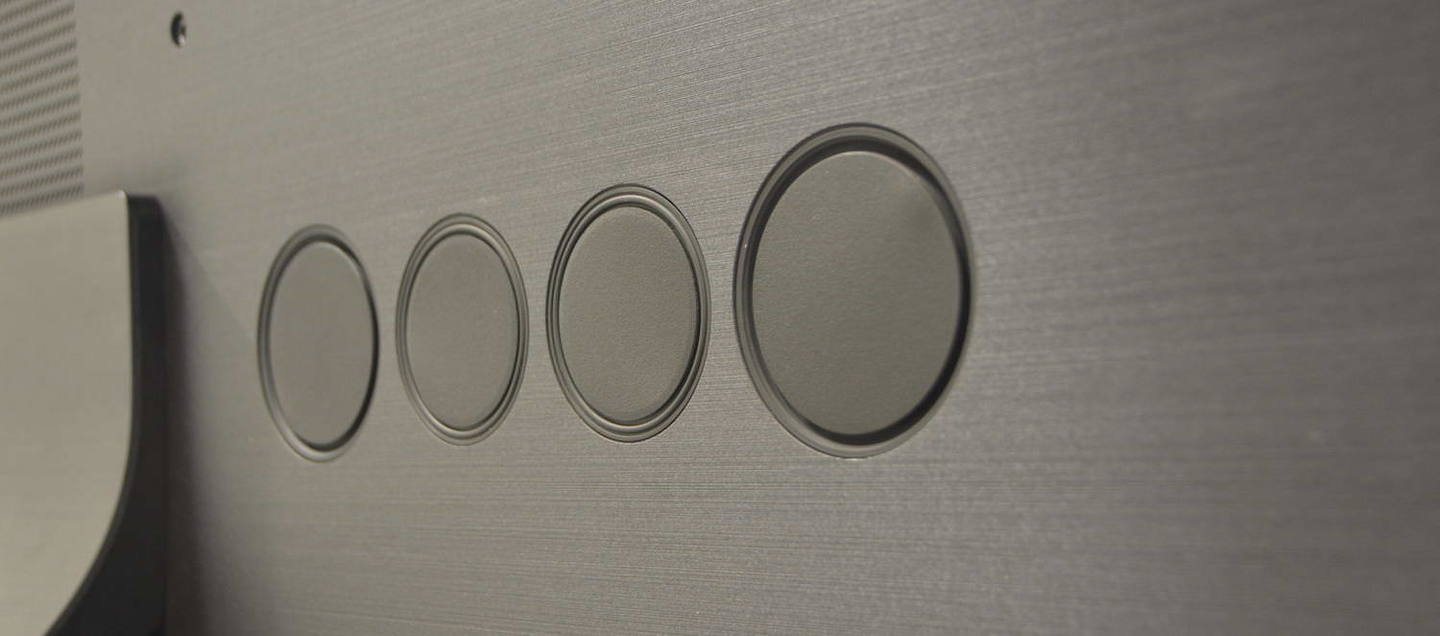 But besides ventilation, the perforated ends are made for one more important thing – the audio system. This TV has as many as eight speakers, four of which are tweeters located at different heights closer to the corners of the screen.