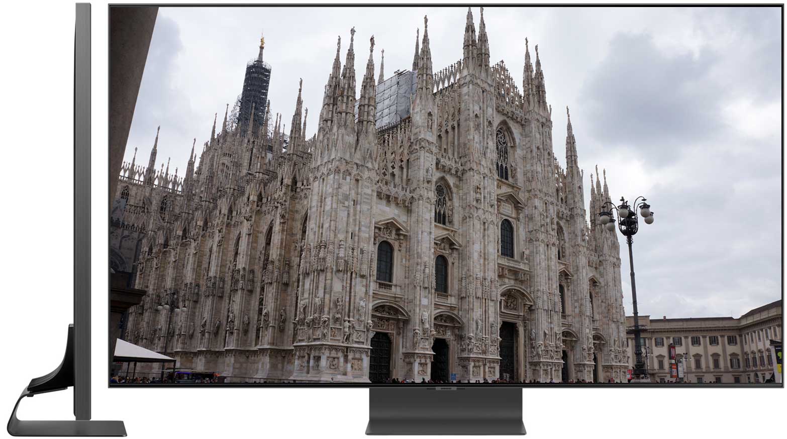 However, the device that comes with the QE65QN95A is much thinner than previous versions. If you do not hang the QE65QN95A on the wall, then you need to attach it to a center-mounted reinforced plate stand that gracefully tilts back behind the screen to provide the necessary counterweight.