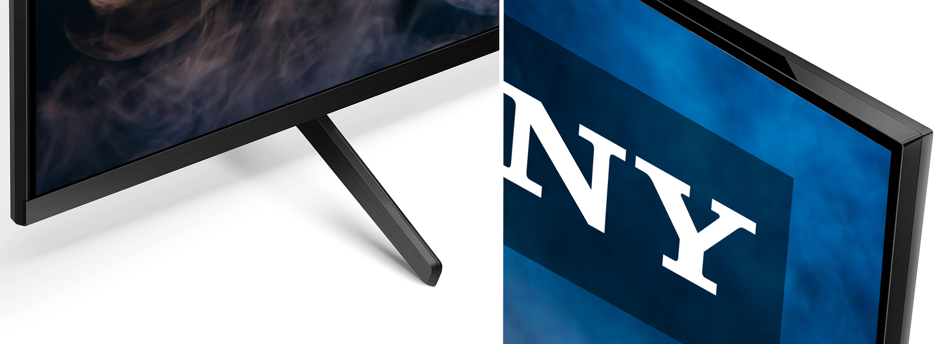 The Sony X85K TV uses a stand in the form of widely spaced legs. This means that you will need a large cabinet to put it on. But for models with a diagonal of 55 inches and above, the legs can be rearranged closer to each other. There are special clips on the back of the legs to group all the cables together.