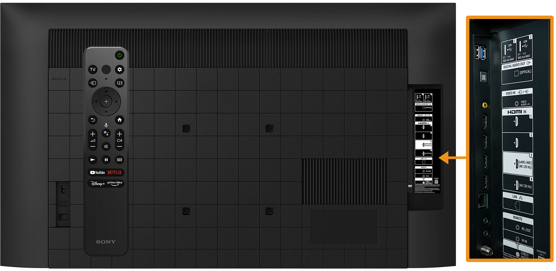 In this case, the presence of side ports helps, since you will not have problems using them if the TV is mounted on the wall. On the back, the Sony X85K retains much of the same layout we saw on the X90K, but as we mentioned, there are some very subtle changes. All ports are placed in the same places, while the plastic back panel now has a new quadratic structure to break the monotony.
