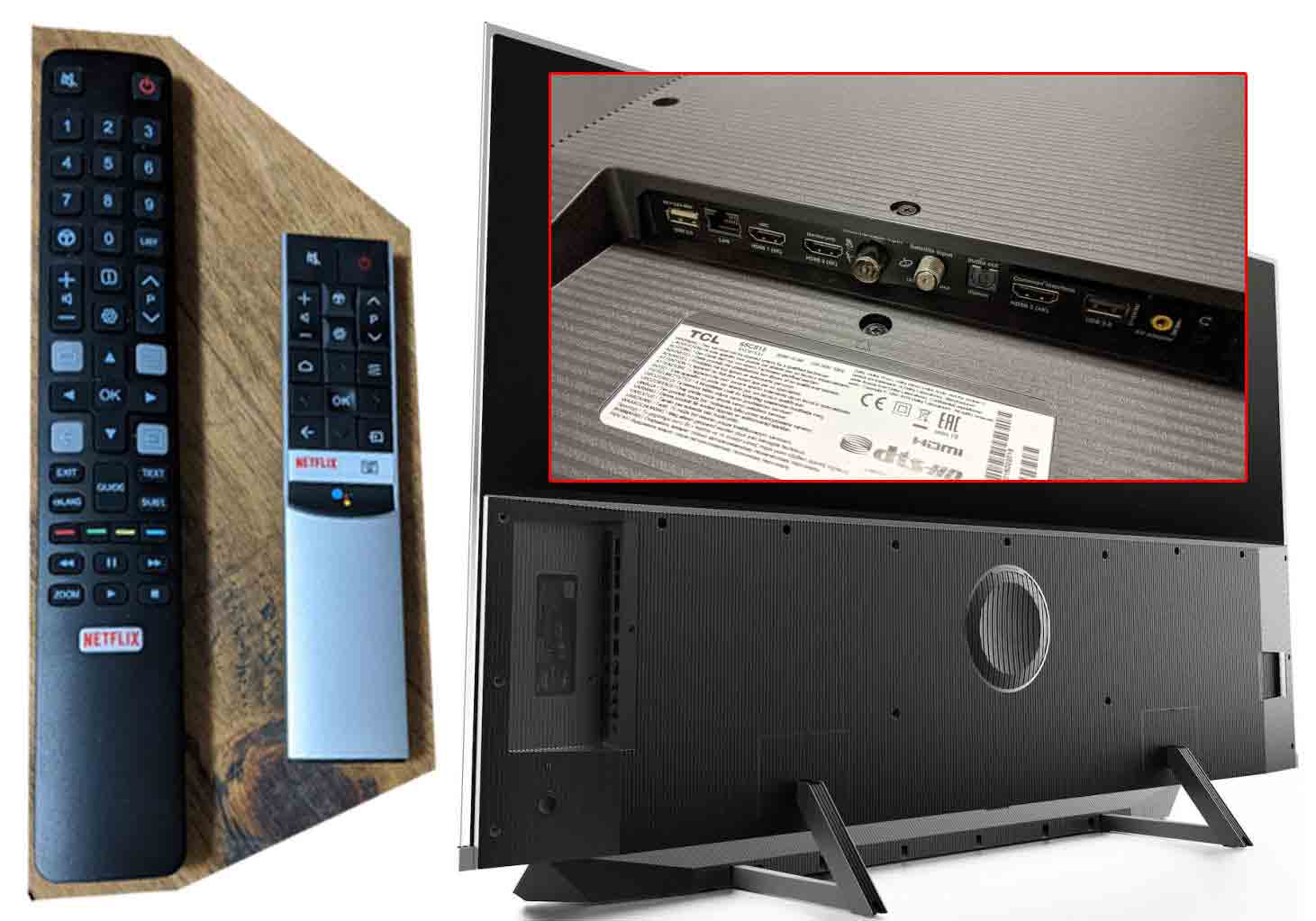 All connections to the 65C815 TV are made from the side. The model has three HDMI connectors. All of them are suitable for UHD HDR, one of the interfaces is equipped with ARC. TCL has decided not to offer HDMI 2.1 connections or functionality just yet. In addition, there are two USB connectors, a composite video input and a stereo audio input, two antenna connectors, and a headphone output. The TVs are equipped with wired and wireless networking and Bluetooth for connecting a mouse, keyboard or wireless headphones.