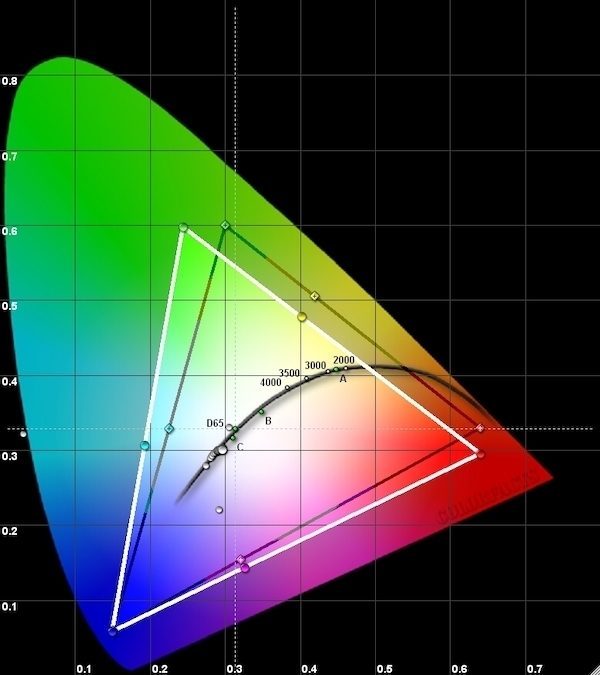 The color gamut is noticeably wider than the VT.709 standard. It is smaller than the claimed 98% DCI-P3, but it is enough for color reflection on films with HDR (not demo).