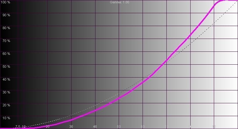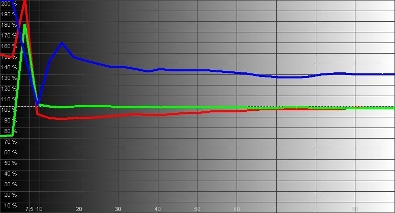 The black level in any case turns out to be quite high – 0.186 cd / m2, unless you turn on all dynamic adjustments to the maximum. In this case, the TV simply turns off the matrix backlight. With off (reduced to zero) dynamic backlight and contrast adjustments, all gradations are displayed correctly: