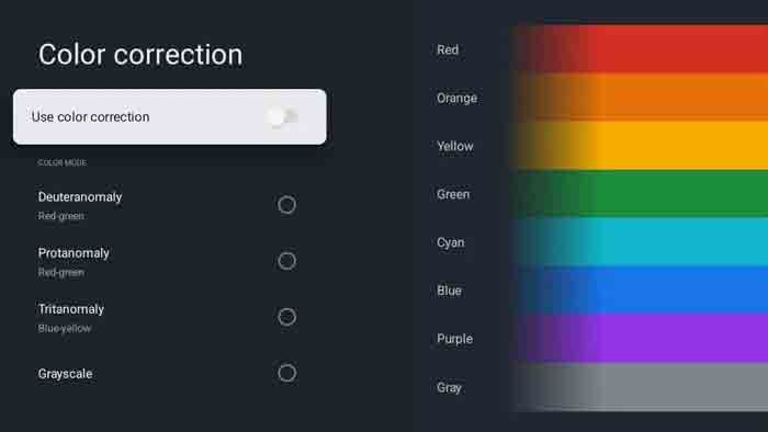 Also in this beta version of Android TV 14, special attention is paid to accessibility. It is now a top-level submenu in the Settings menu instead of hidden in the System submenu. But there are also new special features. The label for scaling the text and setting the bold text should make the text easier to read. There’s also a new color correction setting to help those who are colorblind.