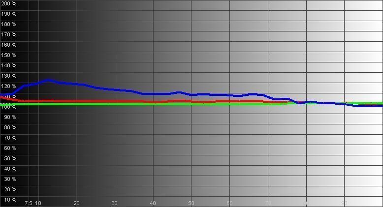 The color balance when choosing a “warm” color temperature setting is well balanced, although there is still a lot of blue at the beginning of the range. Minor adjustment is desirable. The average temperature at this setting is the desired 6500K.