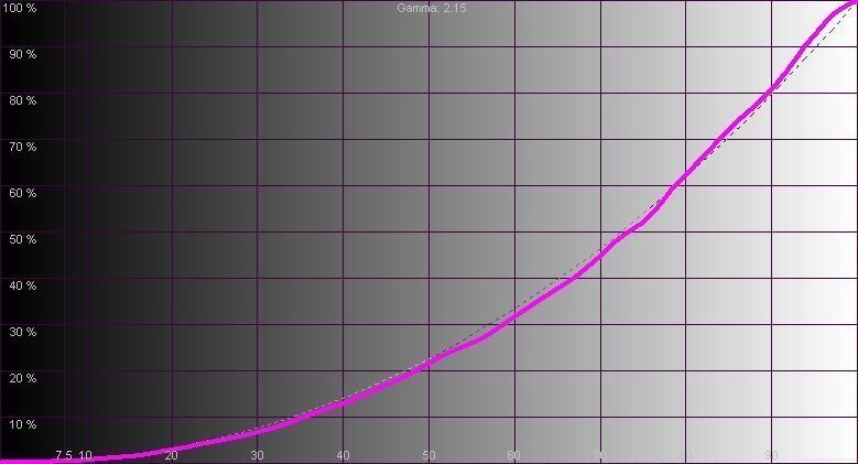 Grayscale levels are perfect even when dynamic laser adjustment is on, as can be seen from the brightness response graph below.
