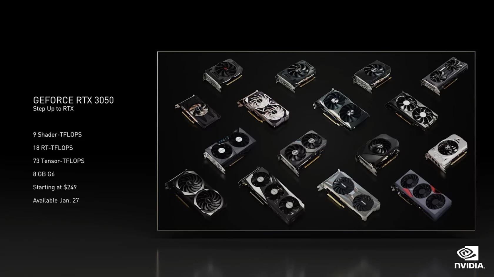 Looks like NVIDIA has a new king of budget PC GPUs – the RTX 3050 starting at $ 249. That’s significantly cheaper than the RTX 3060 graphics card, which starts at $ 329. The novelty is built on the Ampere architecture, has 8 GB of GDDR6 memory and third generation tensor cores. Despite its lower cost, the RTX 3050 supports ray tracing at 60 FPS at 1080p and DLSS. The company believes that the RTX 3050 will be the same graphics card that will replace the models based on the outdated platform: GTX 1650, GTX 1050 Ti and GTX 1050.