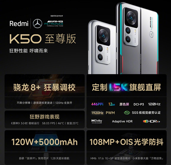 It is worth mentioning the existence of a formula 1-themed version made in collaboration with Mercedes called the Redmi K50 Supreme Edition.