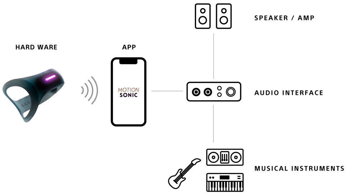 The bracelet is based on a 6-axis sensor. You can set your own effects and assign them to specific movements in a proprietary application available only for iOS devices. The same smartphone will need to be connected to the system to which the instruments are connected. Glover gloves.