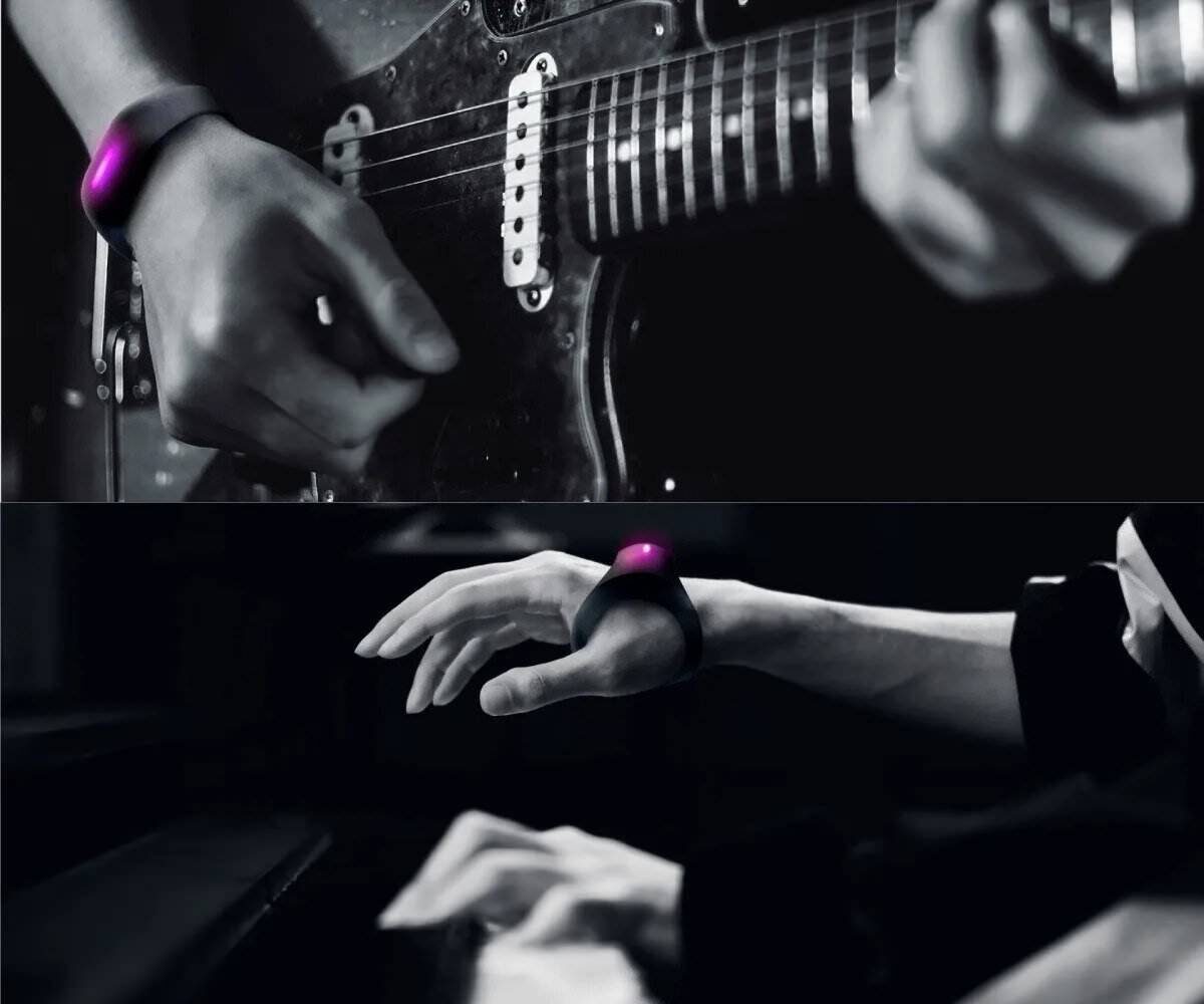 The bracelet itself is an effects device that allows you to change the sound of musical instruments depending on the movements of the musician. The description says that “the music can be played with the body” – more instinctively, naturally and creatively.