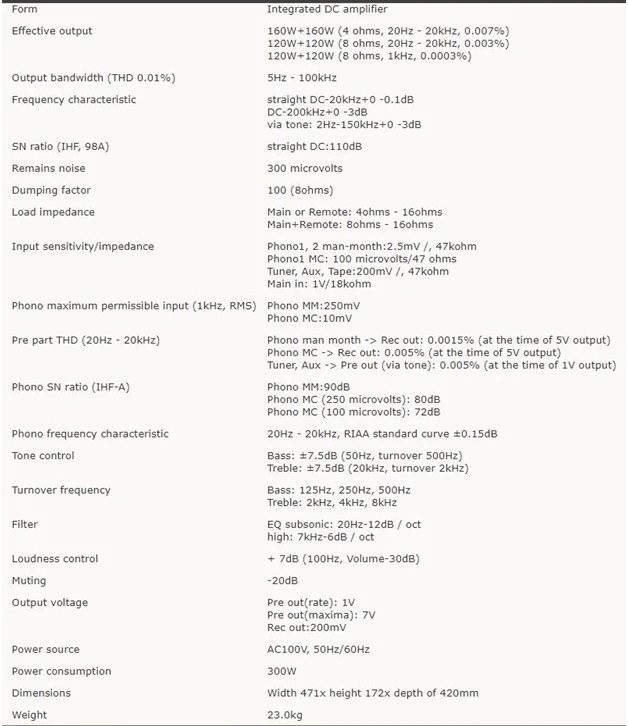 An excellent device, both in sound and in construction and design. From my point of view, it claims to be one of the best vintage integrated PA. RIAA mid-level corrector for built-in – you can listen, but it does not pretend to be a separate component. The amplifier is quite rare, it is very difficult to find it in good condition. There is no documentation for it.