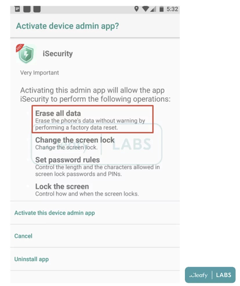 All versions of the Trojan are presented as an APK file and can be packaged in an encrypted JAR or DEX package. This allows malware to bypass antivirus scans. Moreover, BRATA detects antiviruses installed on the device and tries to remove them. The best way to avoid infection is to be extremely careful about what you install on your smartphone or tablet, as well as which applications you grant accessibility or administrator access to.