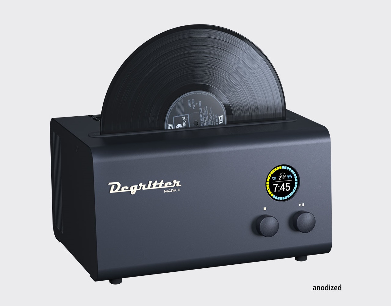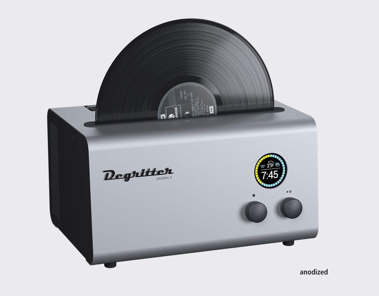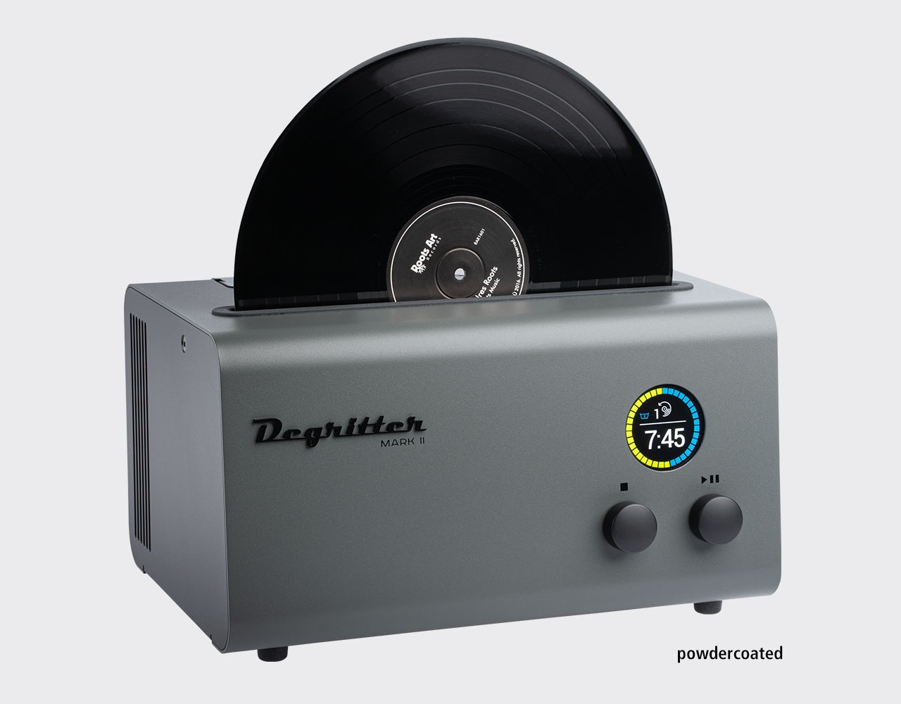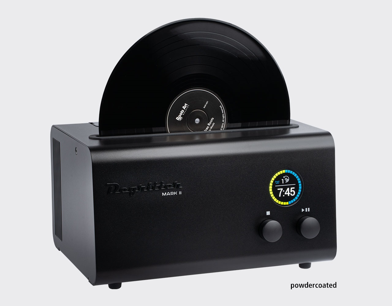 The Degritter Mark II is a compact and efficient record cleaning machine designed for ease of use. It employs an automatic cleaning cycle that utilizes both liquid and ultrasonic technology, ensuring a thorough clean. The manufacturer emphasizes its straightforward operation, and it features two removable liquid reservoirs, each with a capacity of 1.4 liters.
